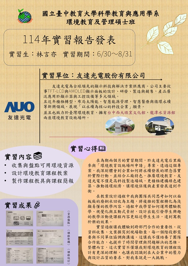 115學年度日間科學教育與應用學系碩士及環境教育及管理碩士班聯合招生面試通知單