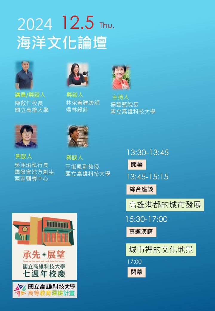 一、本論壇邀請國內專家學者對談、專題演講,會場並同步展出2024海洋文化攝影作品展,活動多元豐富精彩,敬請踴躍參與。