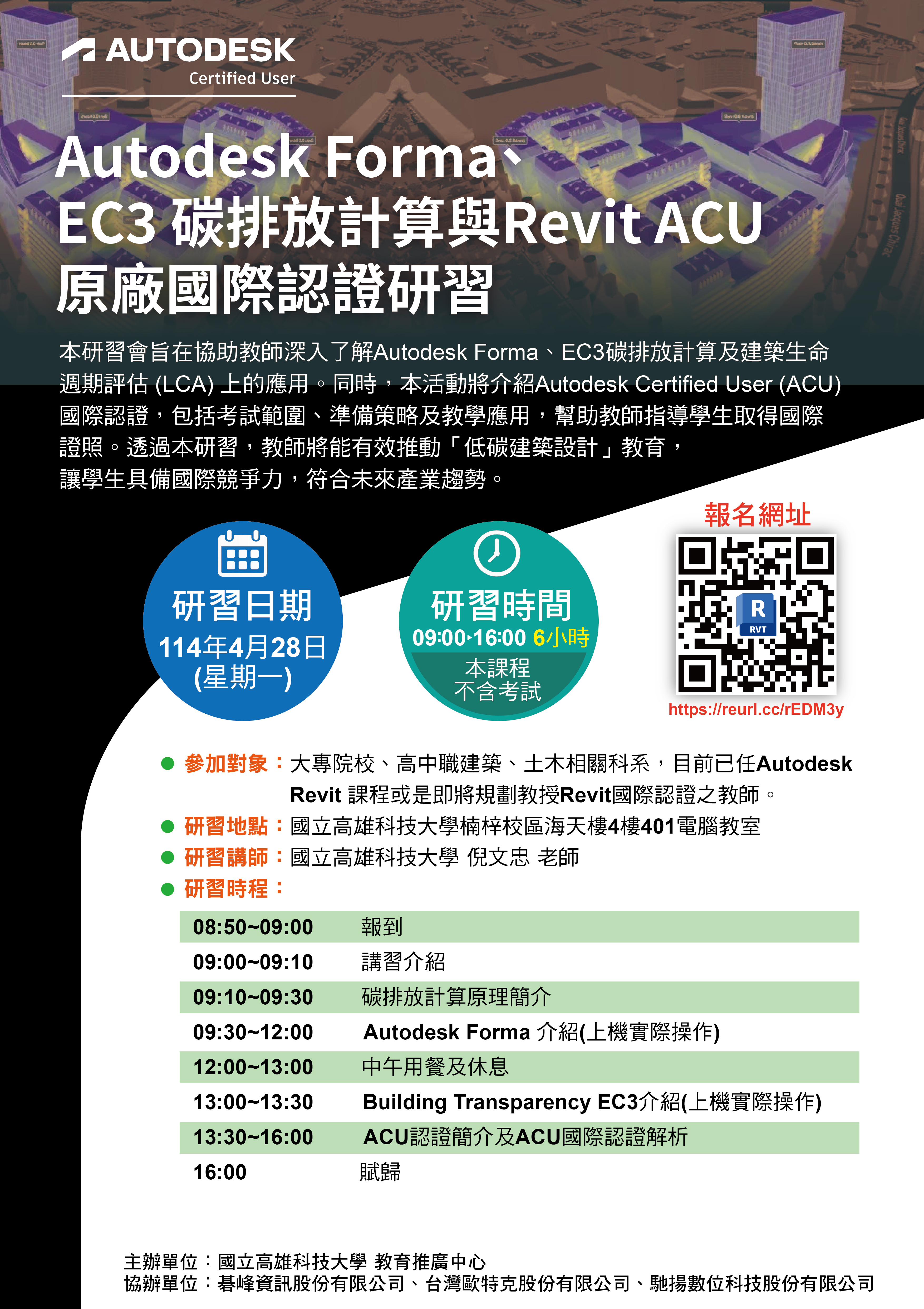 一、旨揭研習在協助教師深入了解Autodesk Forma在EC3碳排放計算及建築生命週期評估(LCA)